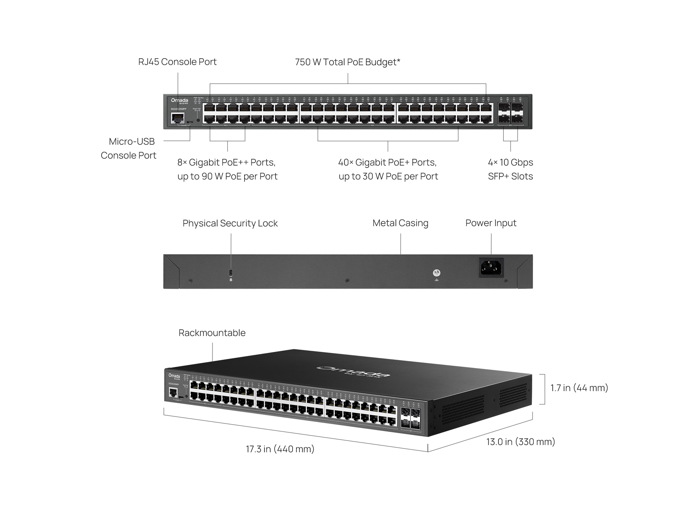 Omada Access Plus 48-Port Gigabit and 4-Port 10GE SFP+ Switch with 40-Port PoE+ & 8-Port PoE++