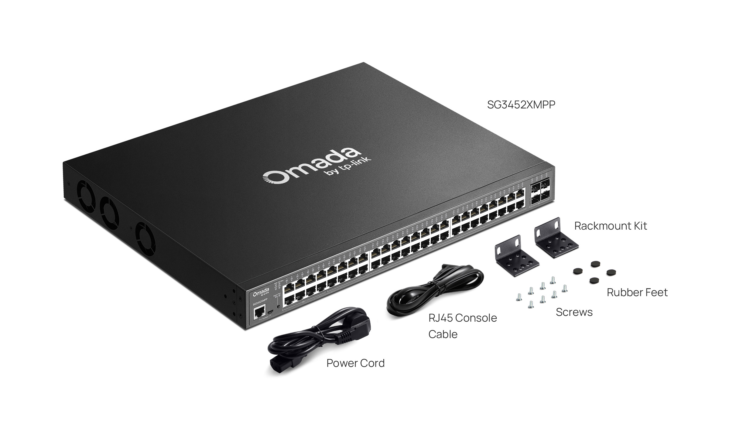 | Package Content | • SG3452XMPP Switch• Power Cord• RJ45 Console Cable• Quick Installation Guide• Rackmount Kit• Rubber Feet• Screws |