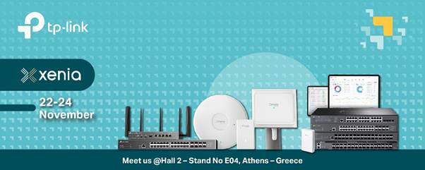 Αθήνα, 18 Νοεμβρίου 2025. Η TP-Link, παγκόσμιος ηγέτης στις δικτυακές λύσεις για επιχειρήσεις και ιδιώτες, θα συμμετάσχει και φέτος στην έκθεση Xenia 2025, που θα πραγματοποιηθεί από τις 22 έως τις 24 Νοεμβρίου στο Metropolitan Expo.