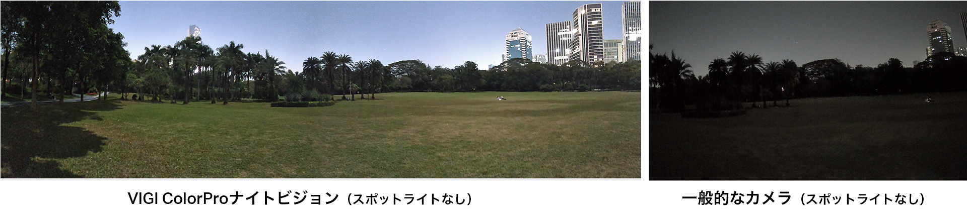 本製品は、スポットライトなどの補助光を使用することなく、低照度環境下でも昼間のようなフルカラー映像を鮮明に記録します。強い可視光を照射する必要がないため、周囲環境に影響を与えることなく監視が可能です。夜間や照明の限られた場所においても、衣服や車両の色、周囲の状況を正確に把握でき、識別精度の向上に貢献します。