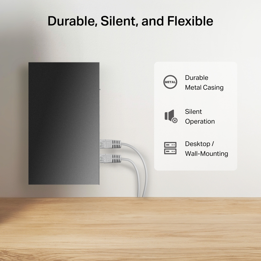 • Metal Casing. Durable metal casing and desktop/wall-mounting design are well-suited for different environments.