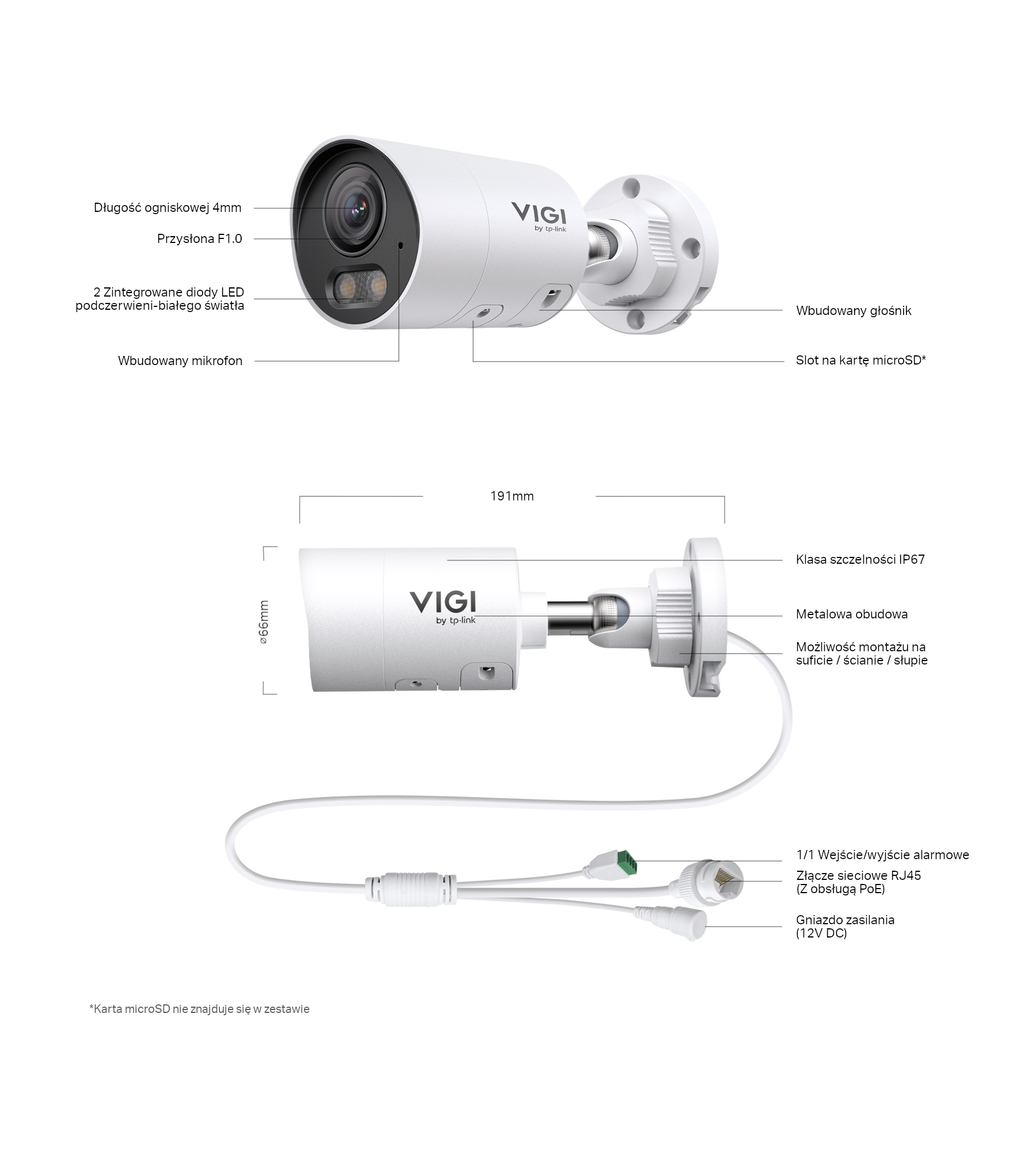 *Karta microSD i zestaw do montażu na słupie nie znajdują się w zestawie.