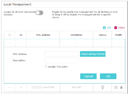 1. Nhấn View Existing Devices (Xem các thiết bị hiện có) và chọn thiết bị bạn muốn cấp quyền quản lý từ danh sách, hoặc tự nhập địa chỉ MAC của thiết bị đó một cách thủ công.