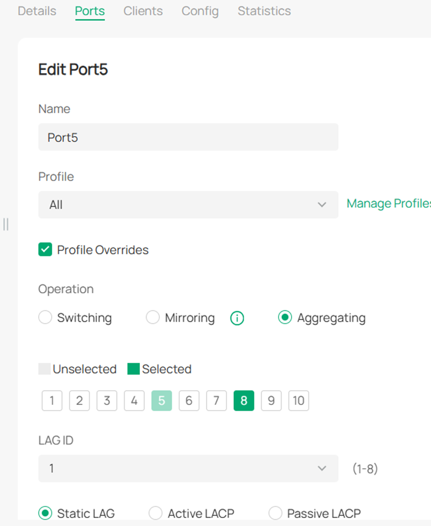 - Chọn chế độ hoạt động Port Aggregation và làm theo các hướng dẫn bên dưới.